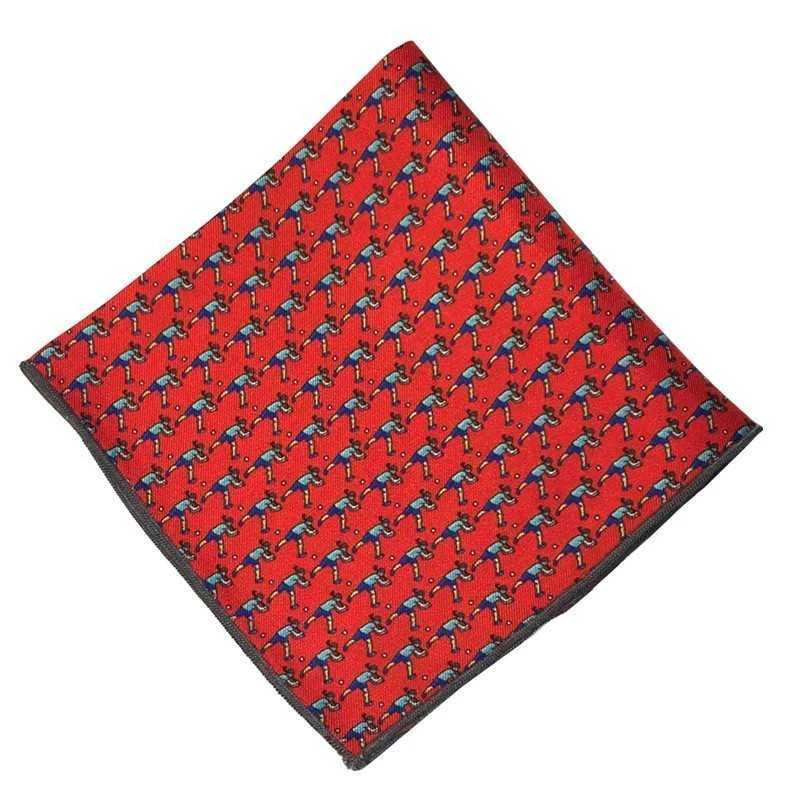 Pañuelo de bolsillo de pura seda italiana con motivo de jugador listo para hacer un golpeo de revés en carrera.