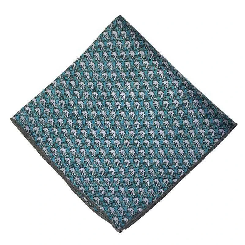 Sólo los mejores jugadores son capaces de jugar y pasar la bola con la cabeza levantada para saber en todo momento lo que hacen sus compañeros y contrincantes. Pañuelo de bolsillo de pura seda italiana con motivos de jugadores casi superpuestos tras hacer un pase de push con la cabeza bien arriba!